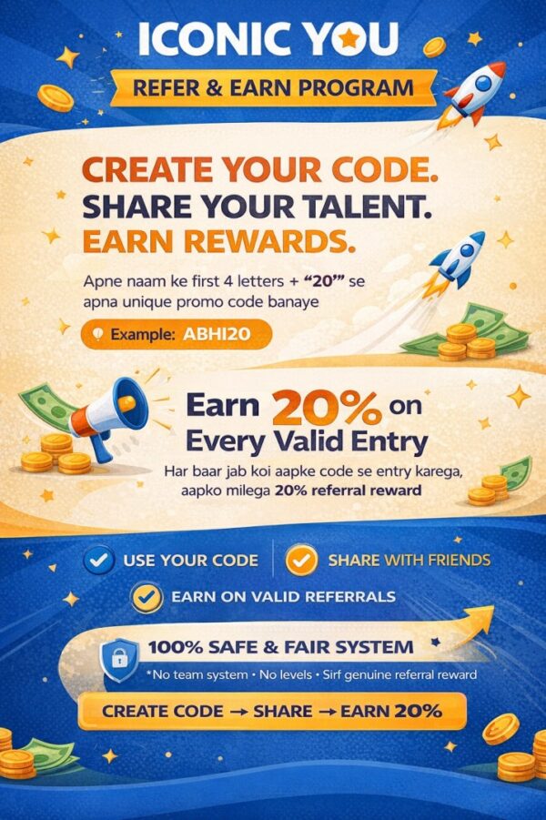 🚀 Make Your Code. Share & Earn 20%Create your unique code using your name (first 4 letters + 20)Example: RAJU20, AMAN20 👉 Start earning on every referral!
